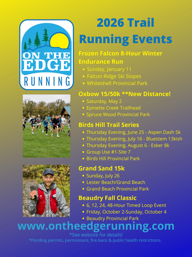 providing well-organized, super-chill, simple and fun events (with yummy snacks) to the trail running community in Manitoba.